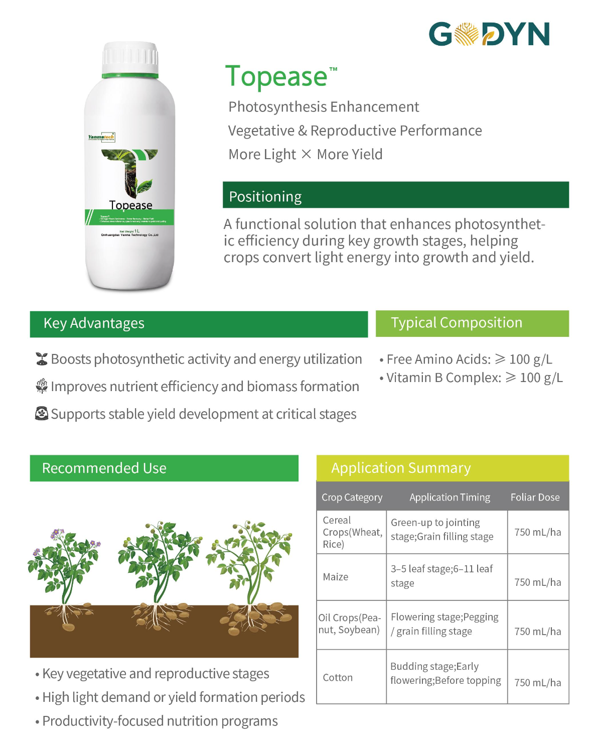 GODYN® Topease Photosynthesis Enhancement Vegetative & Reproductive Performance More Light × More Yield
